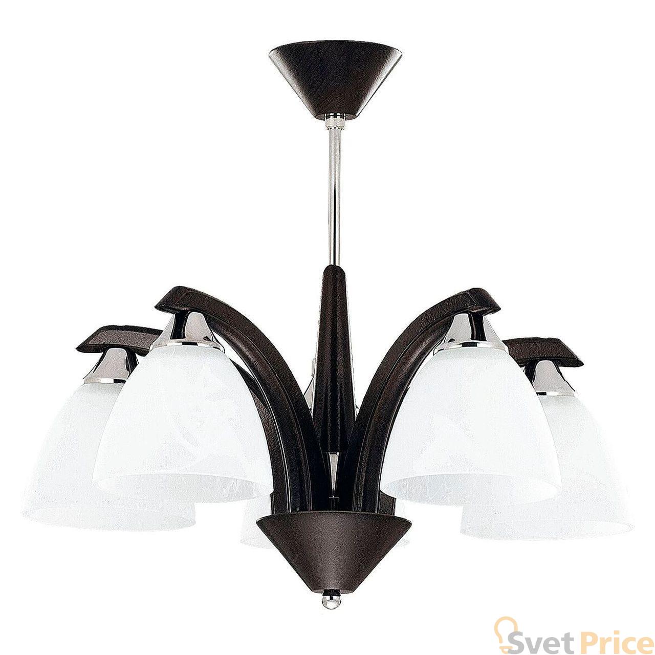 Потолочная люстра Alfa из коллекции Los Venge производства Польша. Люстра 11515 имеет цоколь E27, в конструкции используются стеклянные виды материалов, металлическая арматура коричневого цвета и 5 белых плафона из материала стекло.