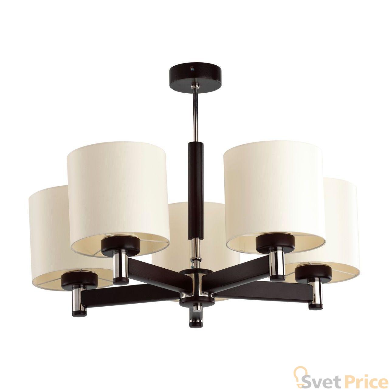 Потолочная люстра Alfa из коллекции Lozano производства Польша. Люстра 16345 имеет цоколь E27, в конструкции используются текстильные виды материалов, металлическая арматура коричневого цвета и 5 бежевых плафона из материала ткань.