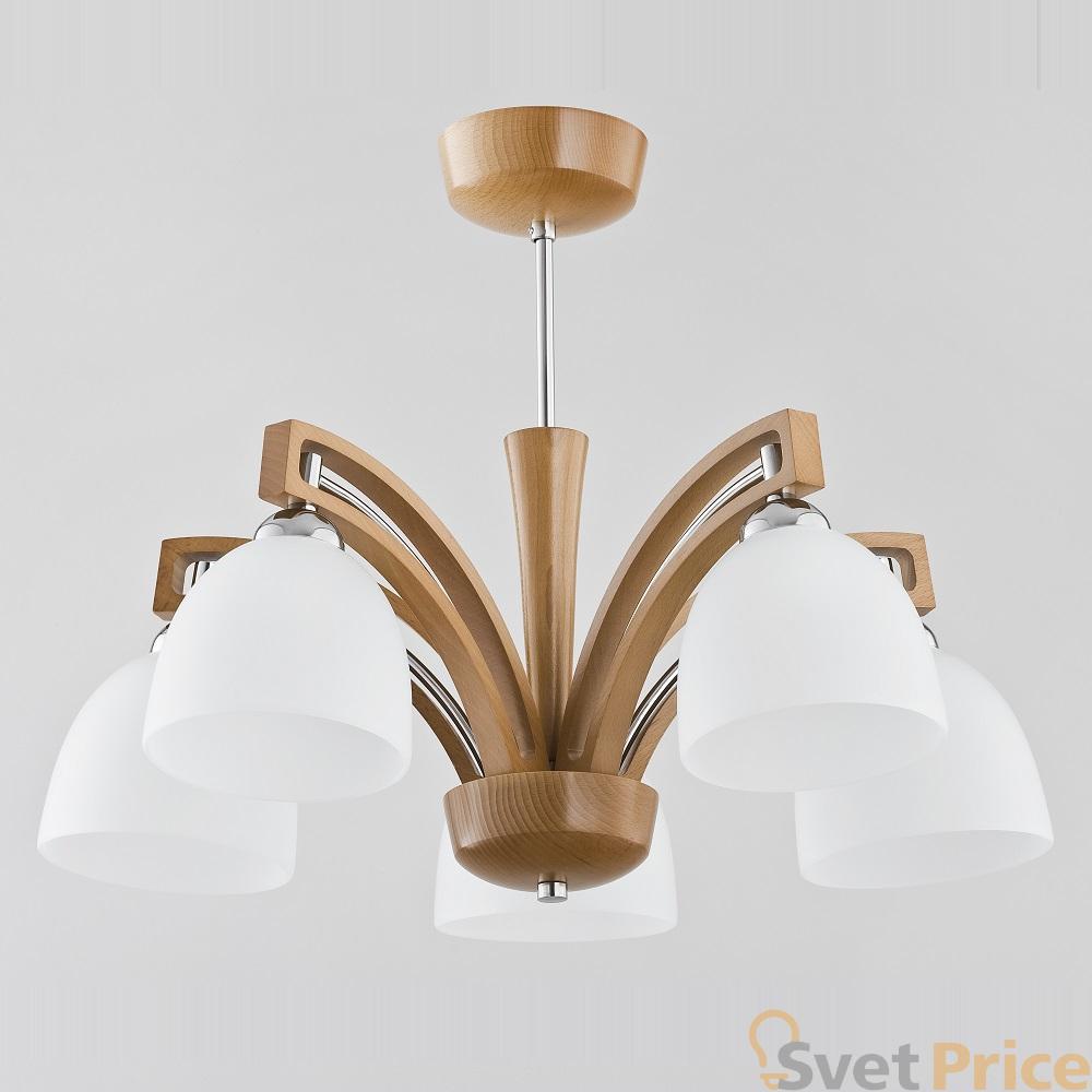 Потолочная люстра Alfa из коллекции Magnat производства Польша. Люстра 21385 имеет цоколь E27, в конструкции используются деревянные виды материалов, металлическая арматура коричневого цвета и 5 белых плафона из материала стекло.