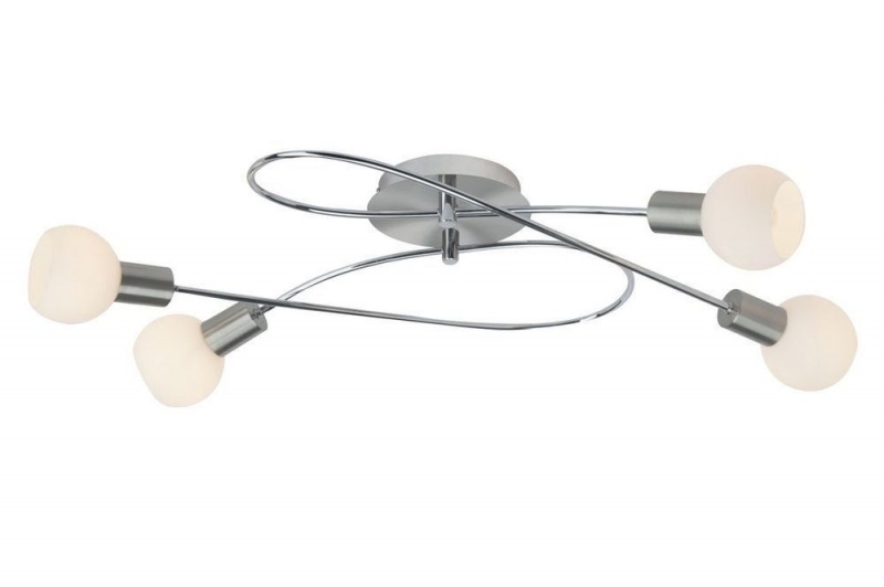 Потолочная люстра Brilliant из коллекции Philo производства Германия. Люстра G16394/13 имеет цоколь E14, в конструкции используются стеклянные виды материалов, металлическая арматура цвета хром и 4 белых плафона из материала стекло.