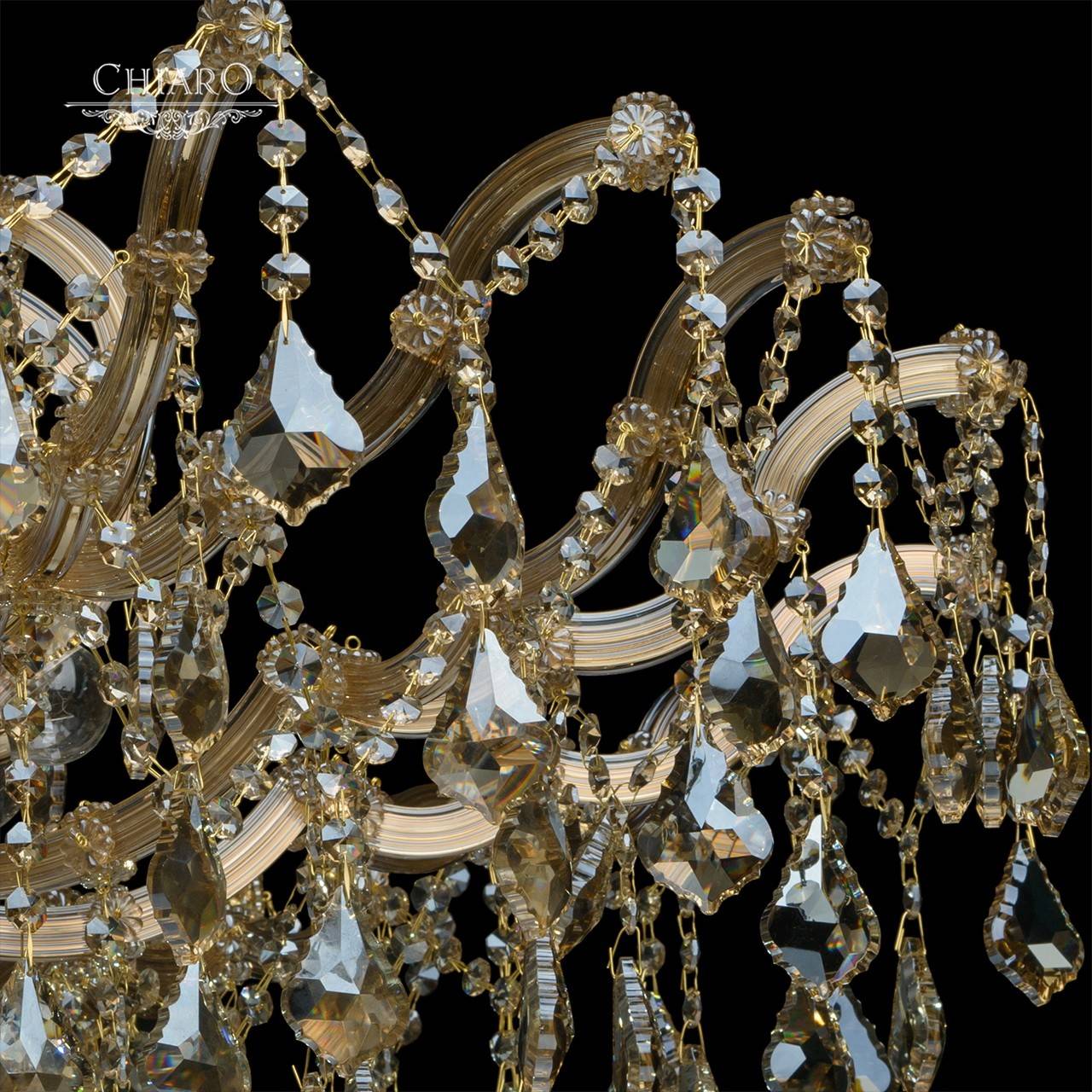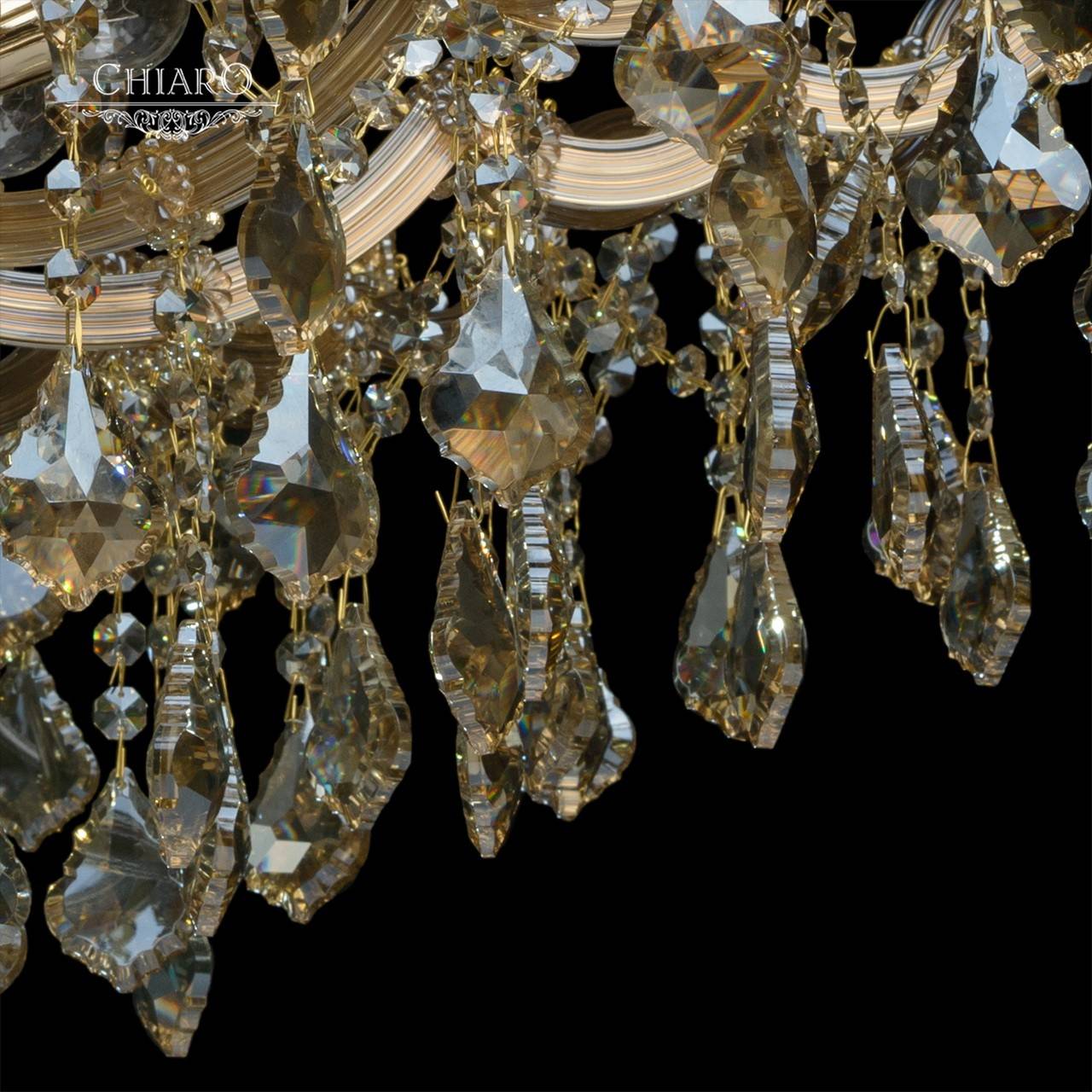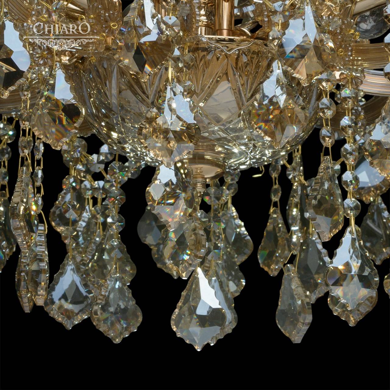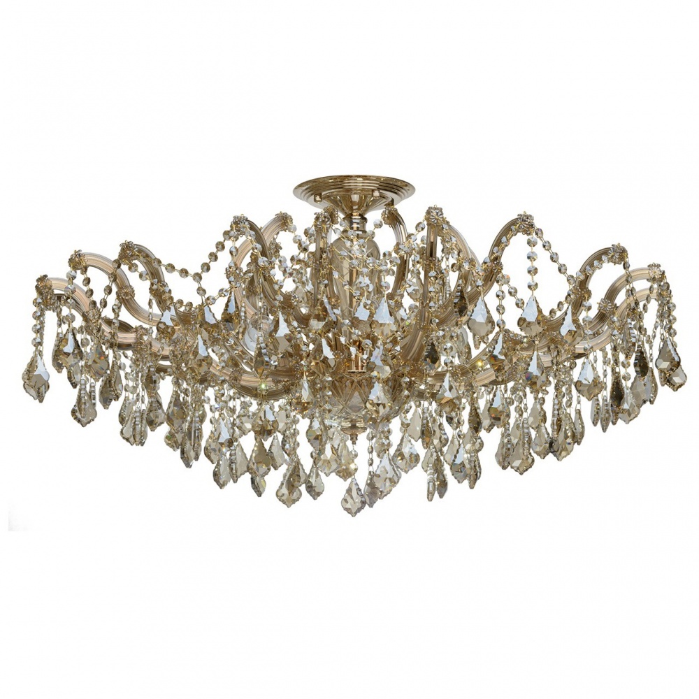 Потолочная люстра CHIARO из коллекции Луиза производства Германия. Люстра 383011310 имеет цоколь E14, в конструкции используются хрустальные виды материалов, металлическая арматура золотого цвета и 10 золотых плафона из материала хрусталь.