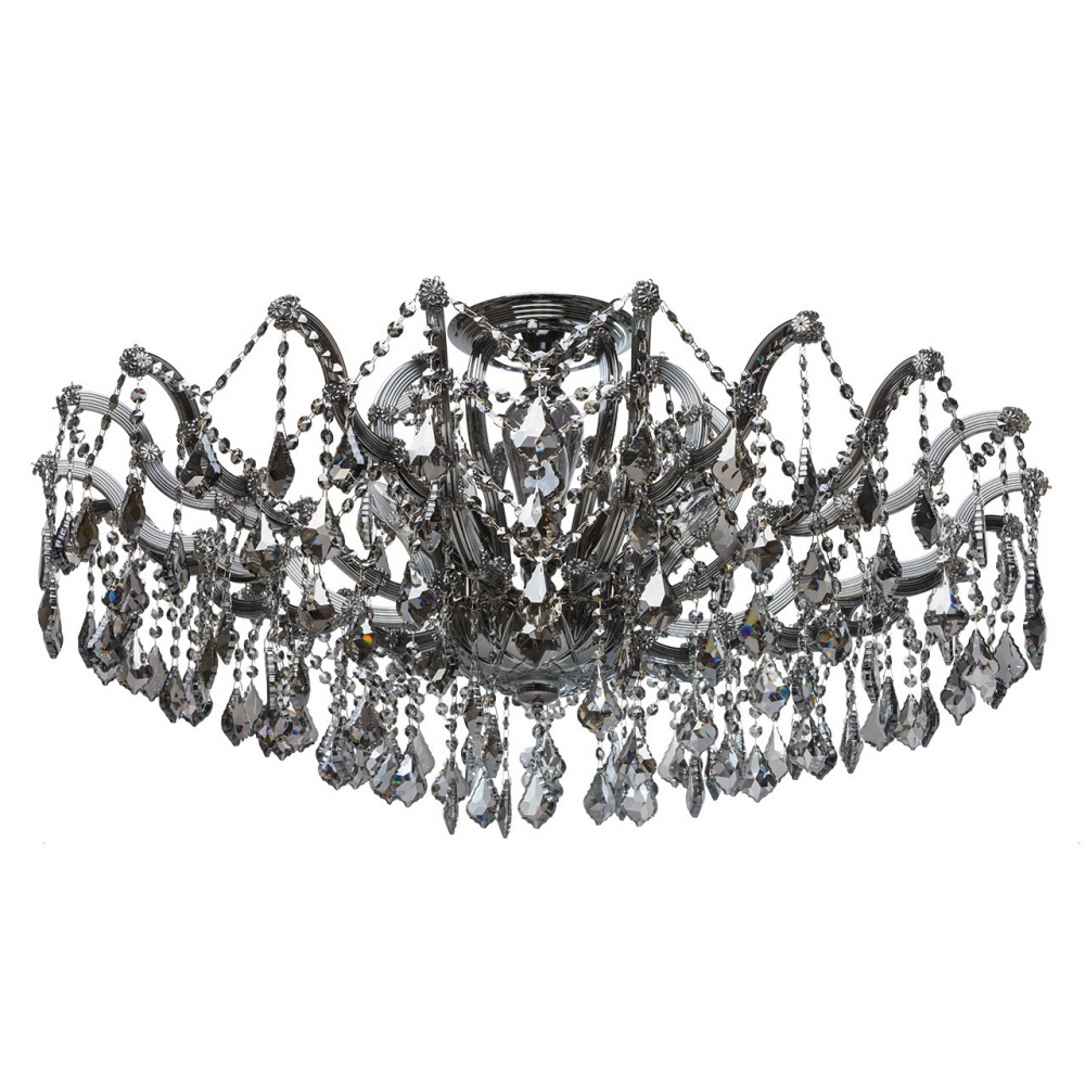 Потолочная люстра CHIARO из коллекции Луиза производства Германия. Люстра 383011410 имеет цоколь E14, в конструкции используются хрустальные виды материалов, металлическая арматура цвета хром и 10 серых плафона из материала хрусталь.