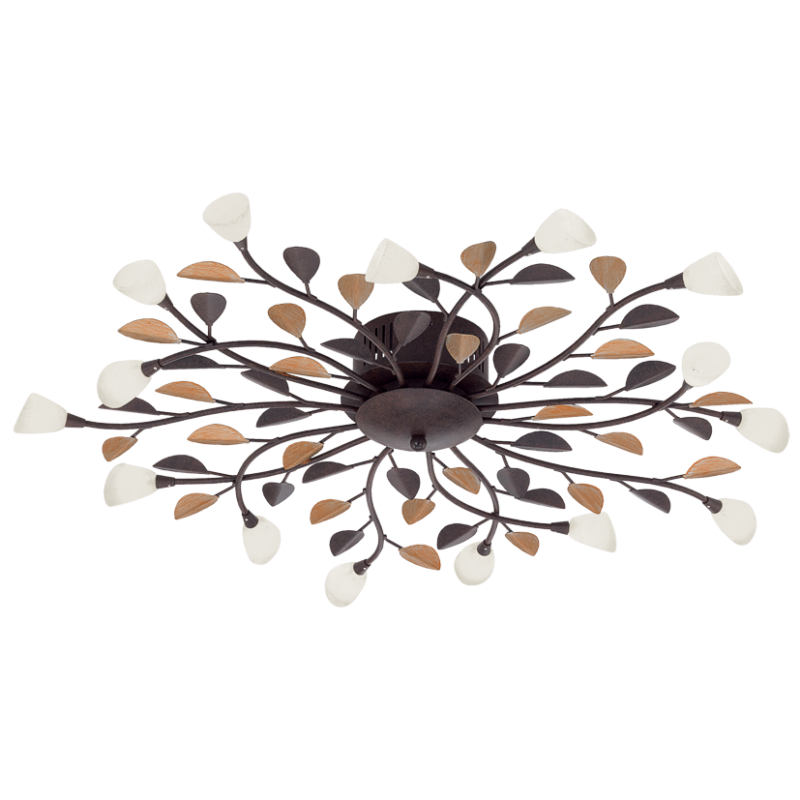 Потолочная люстра Eglo из коллекции Campania производства Австрия. Люстра 90737 имеет цоколь G4, в конструкции используются стеклянные виды материалов, металлическая арматура коричневого цвета и 15 белых плафона из материала стекло.