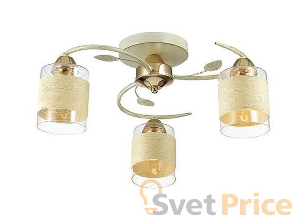 Потолочная люстра Lumion из коллекции Filla White производства Италия. Люстра 3029/3C имеет цоколь E27, в конструкции используются текстильные виды материалов, металлическая арматура золотого цвета и 3 прозрачных плафона из материала стекло.