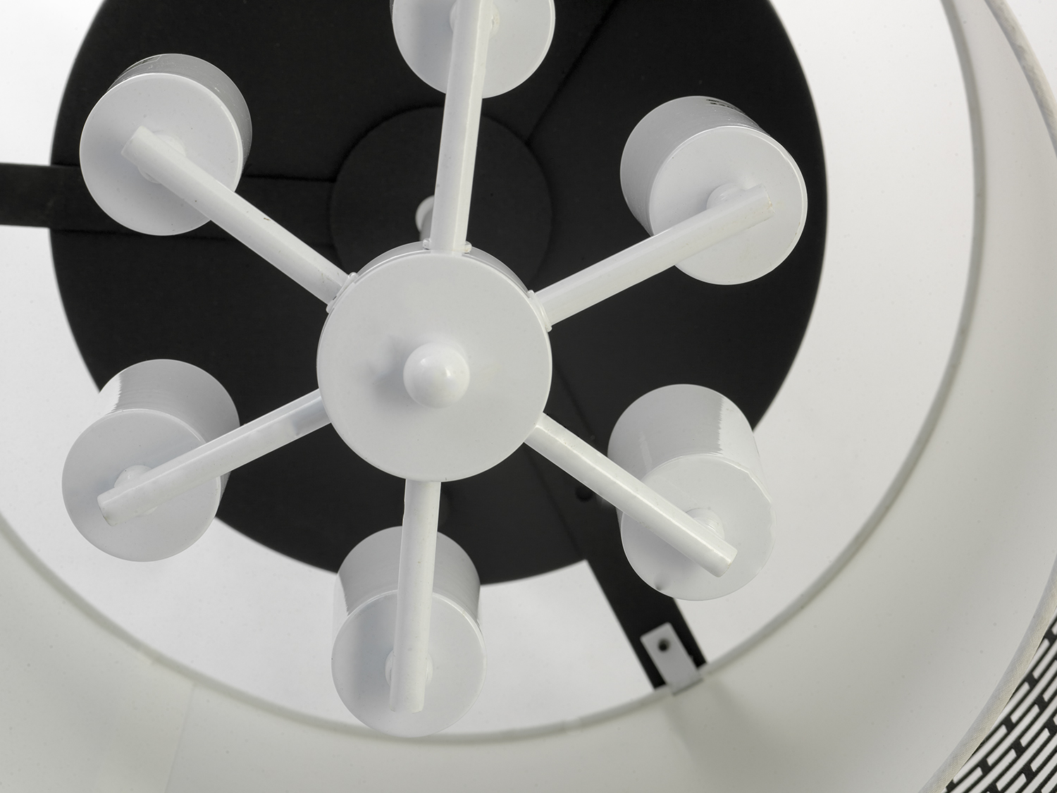 Потолочная люстра Lussole LOFT из коллекции Loft 71 производства Италия. Люстра LSP-9676 имеет цоколь E27, в конструкции используются металлические виды материалов, металлическая арматура черного цвета и 6 белых плафона из материала ткань.