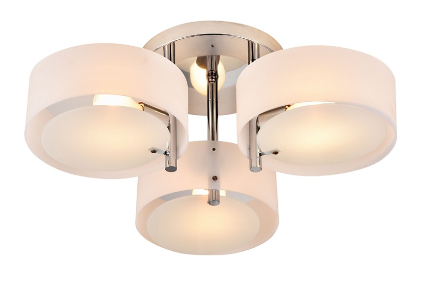Потолочная люстра ST Luce из коллекции Foresta производства Италия. Люстра SL483.502.03 имеет цоколь E27, в конструкции используются пластиковые виды материалов, металлическая арматура цвета хром и 3 белых плафона из материала стекло.