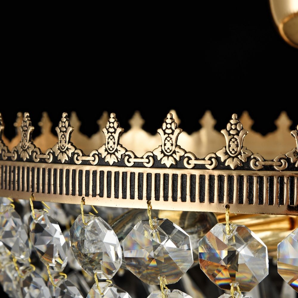 Цвет Белый Виды материалов Стеклянные Цвет арматуры Золото Материал арматуры Металл Материал плафонов Хрусталь Форма плафона Декоративный Общая информация