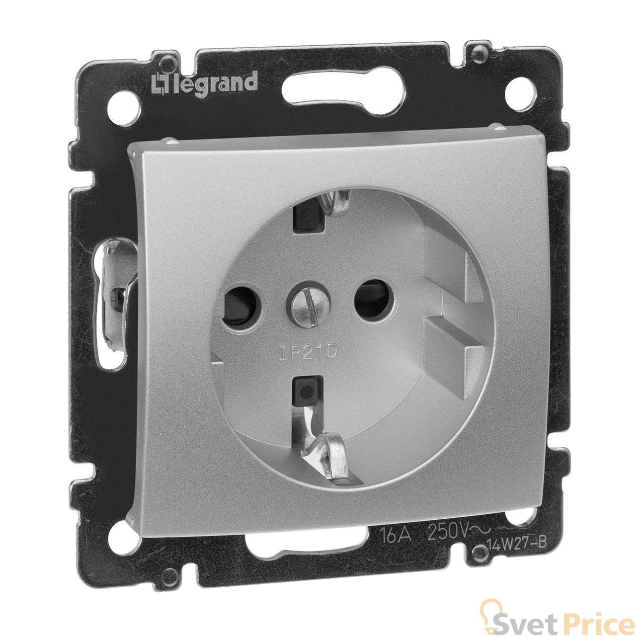 Розетка 2К+3 Legrand Valena 16A 250V с/з со шторками винтовой зажим алюминий 770121