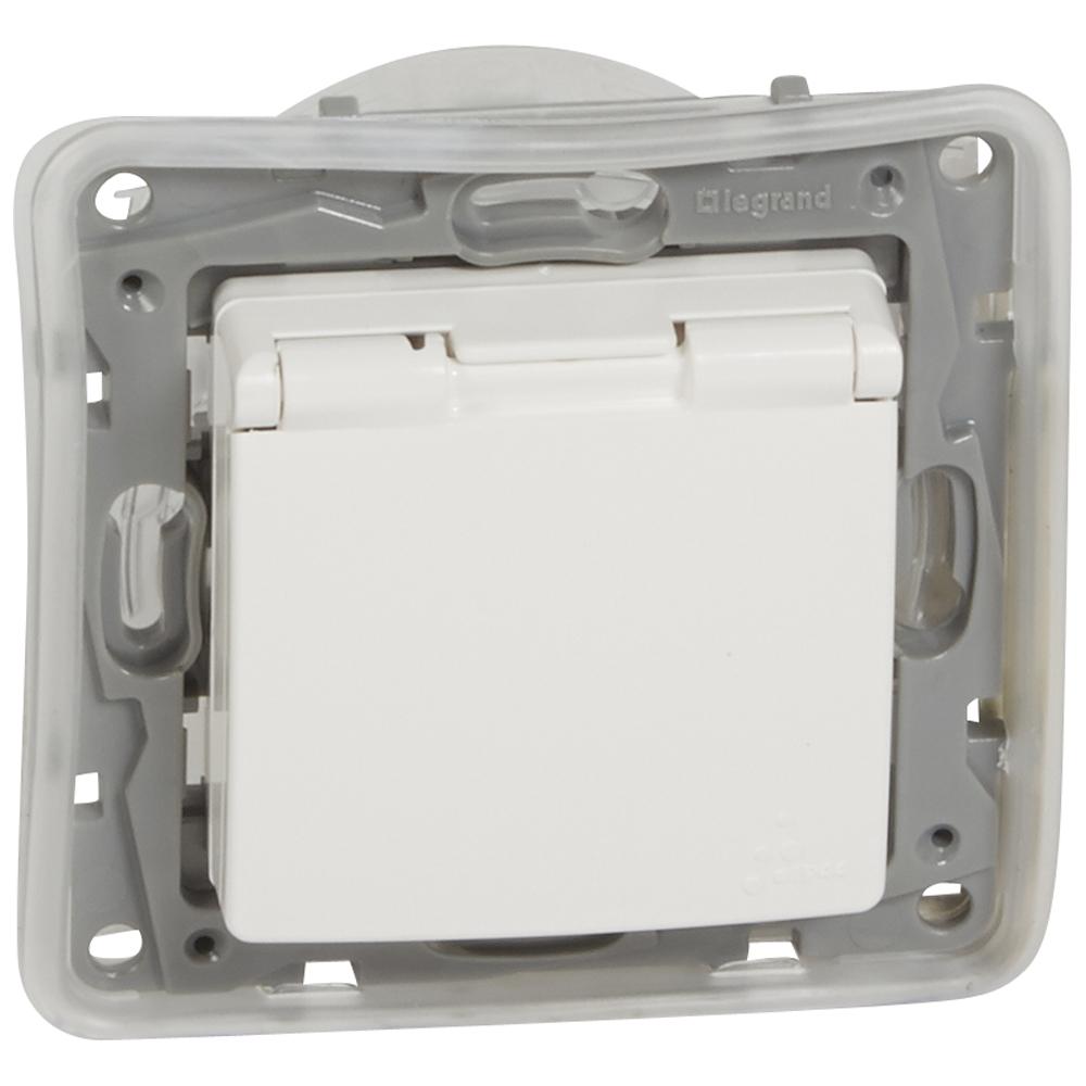 Розетка 2К+З Legrand Etika 16A 250V с/з со шторками крышкой безвинтовой зажим немецкий стандарт белый 672232