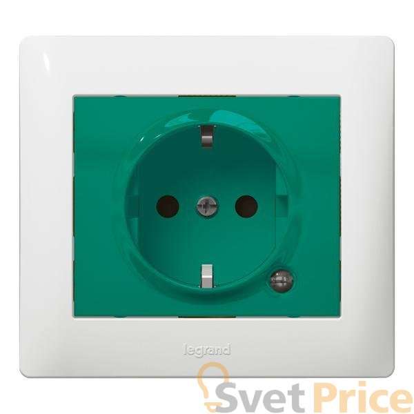 Розетка 2К+З Legrand Galea Life 16A 250V с/з со шторками подсветкой зеленая 771044