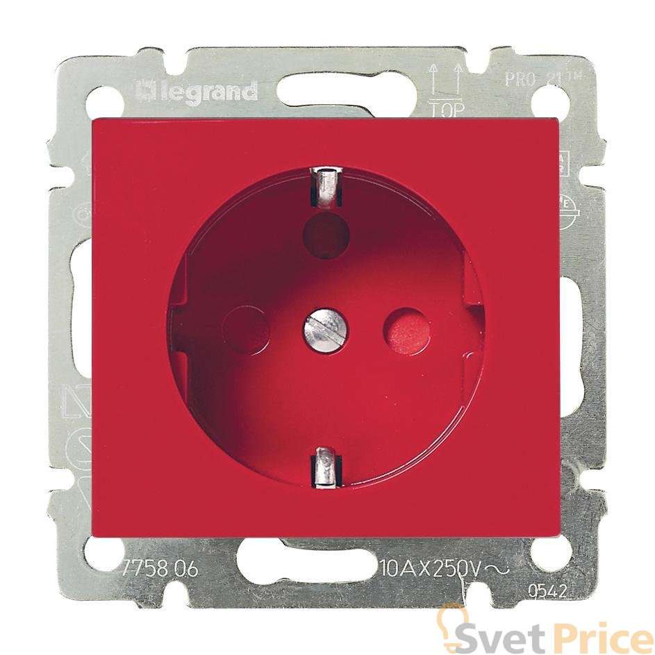 Розетка 2К+З Legrand Valena 16A 250V с/з со шторками винтовой зажим красная 774327