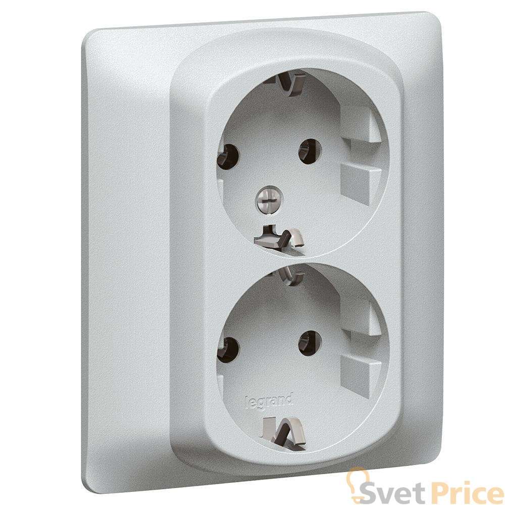 Розетка 2х2К+3 Legrand Galea Life 16A 250V с/з со шторками винтовой зажим алюминий 771331