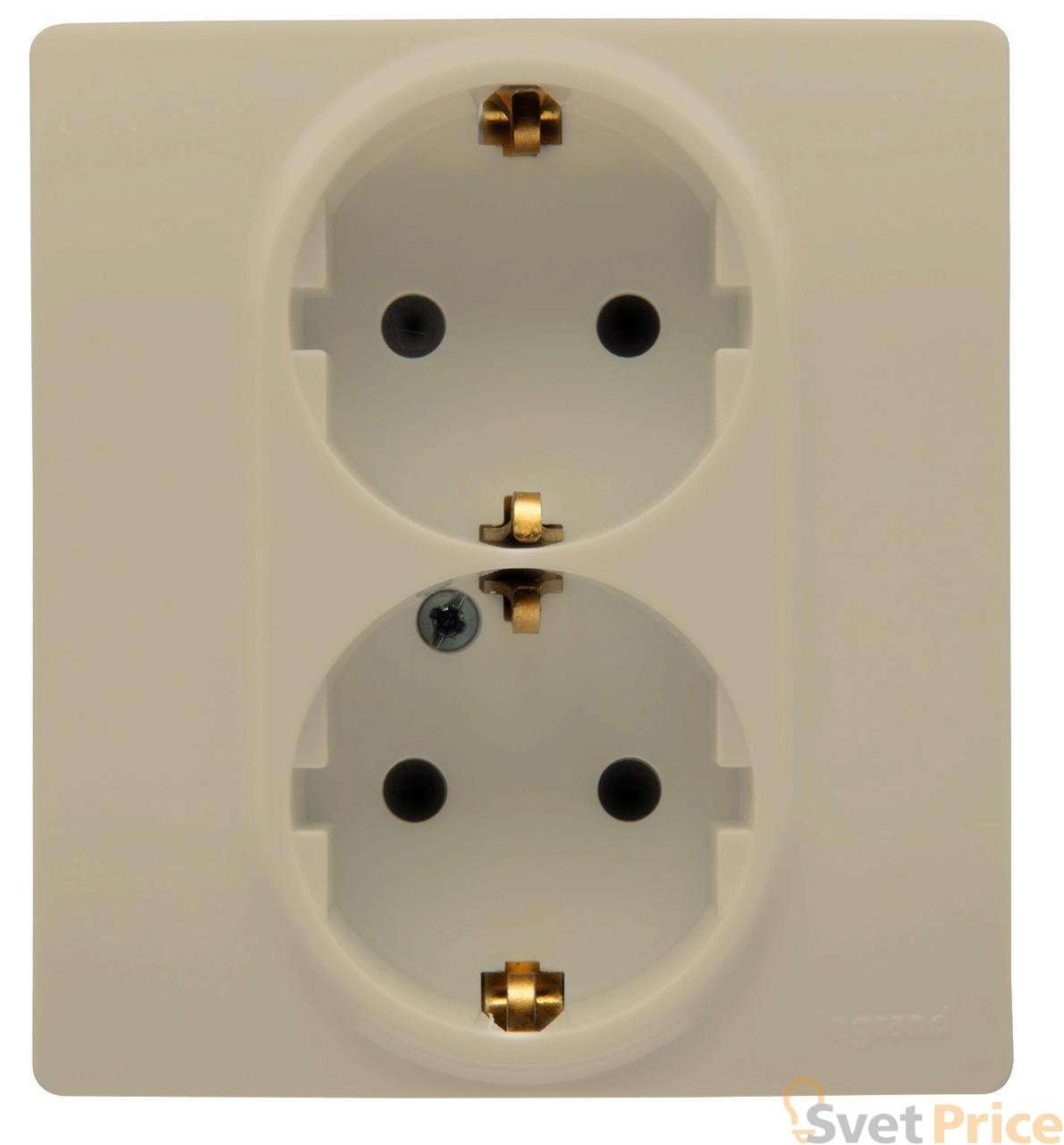 Розетка 2X2К+З Legrand Etika 16A 250V с/з со шторками безвинтовой зажим немецкий стандарт слоновая кость 672333