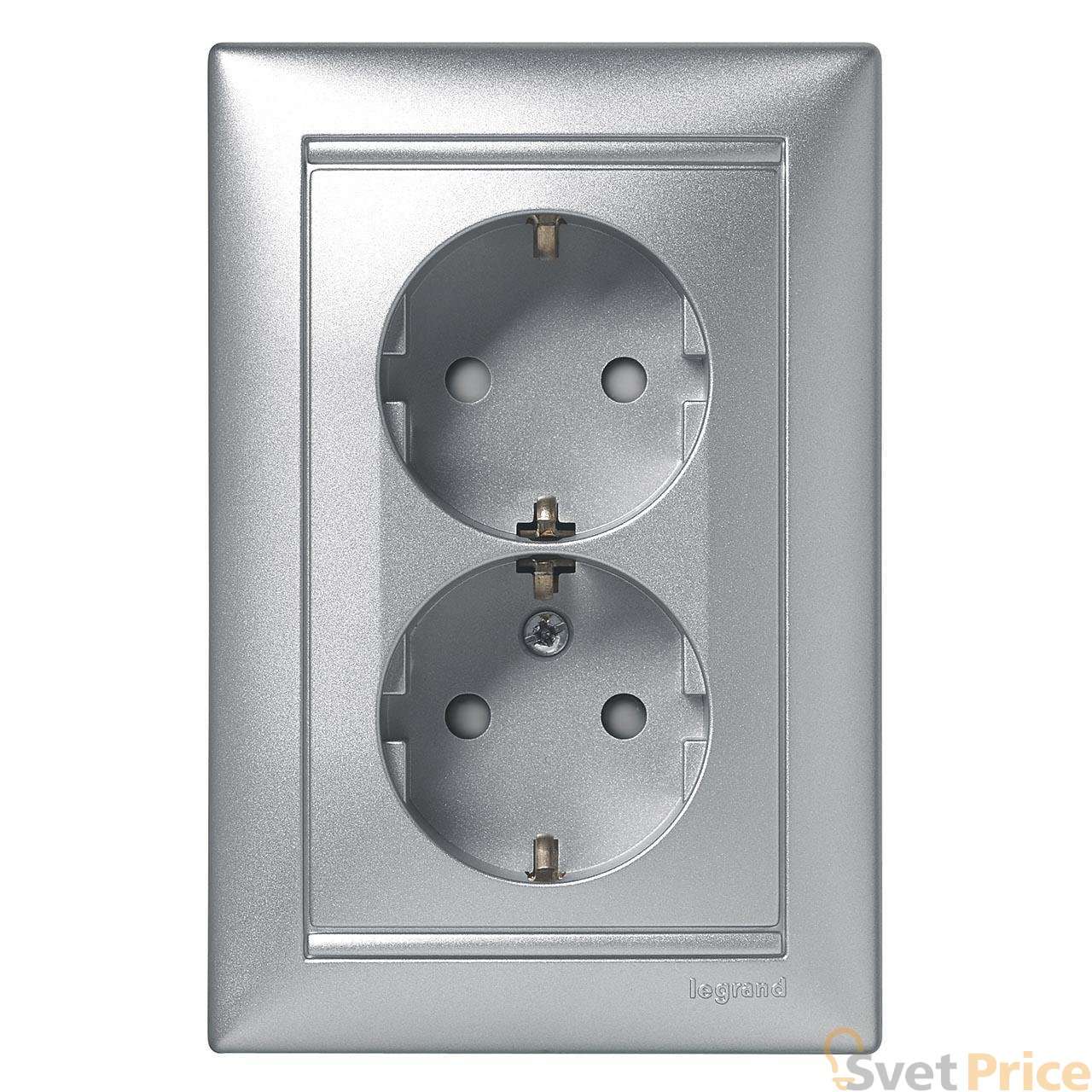 Розетка 2x2К+З Legrand Valena 16A 250V с/з со шторками винтовой зажим алюминий 770127