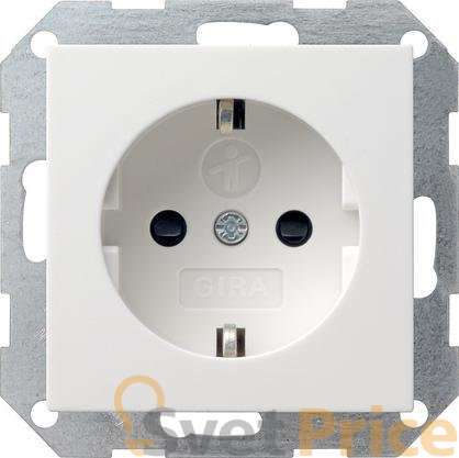 Розетка Gira System 55 Schuko с/з со шторками 16A 250V безвинтовой зажим чисто-белый глянцевый 045303