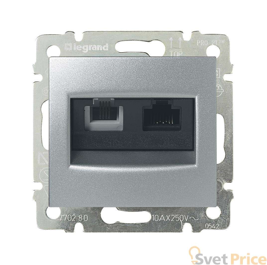 Розетка комбинированная RJ11+RJ45 Legrand Valena 6 кат UTP на винтах алюминий 770280
