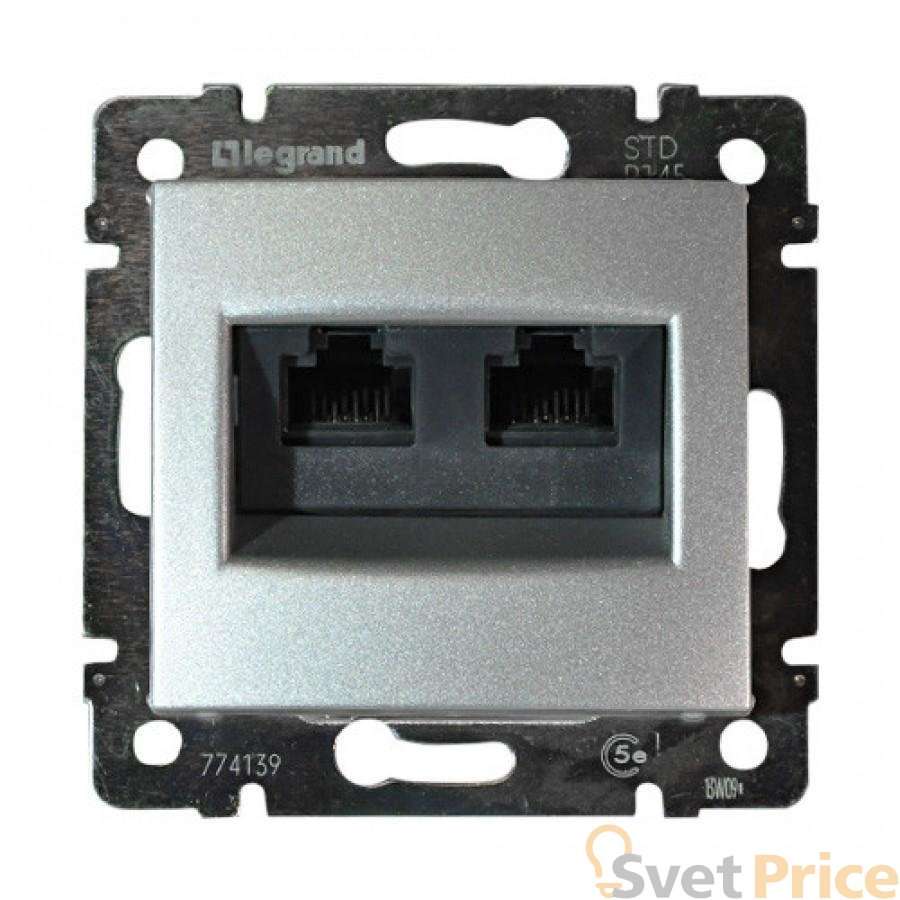 Розетка компьютерная 2хRJ45 Legrand Valena 5e кат UTP на винтах алюминий 770239