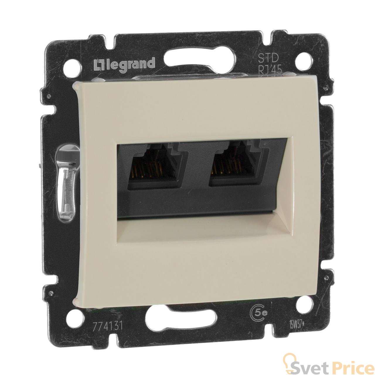 Розетка компьютерная 2хRJ45 Legrand Valena 5e кат UTP с захватами слоновая кость 774131