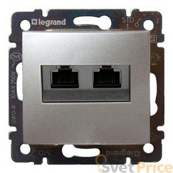 Розетка компьютерная 2хRJ45 Legrand Valena 6 кат UTP на винтах алюминий 770243