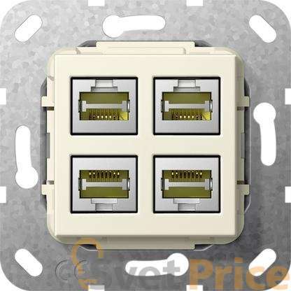 Розетка компьютерная 4-местная MJ RJ45 Gira System 55 LSA Plus 6a кат кремовый глянцевый 569901