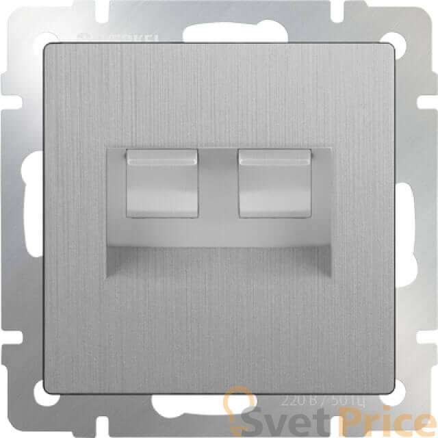 Розетка телефонная RJ-11 и Ethernet RJ-45 серебряная рифленая WL09-RJ11-45 4690389085055
