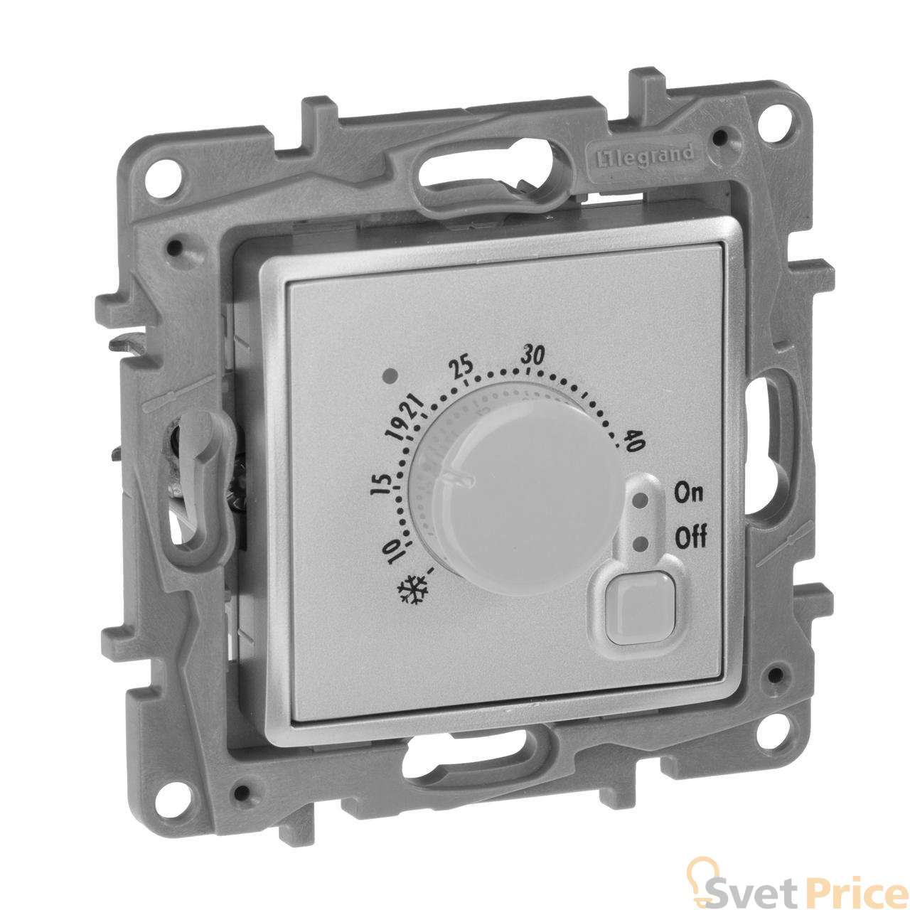 Термостат Legrand Etika с внешним датчиком для тёплых полов алюминий 672430