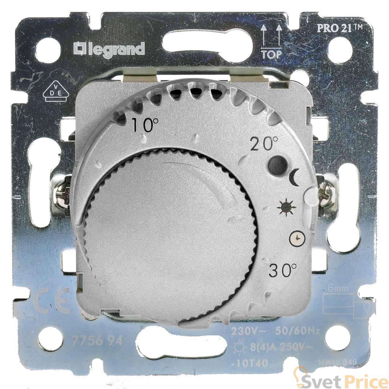 Термостат Legrand Galea Life с подсветкой НЗ контактом алюминий 775693