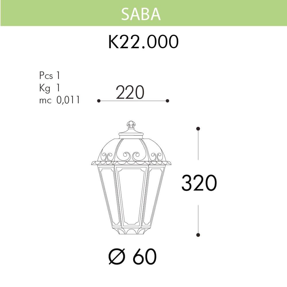 Место установки На опору освещения Страна Италия Артикул K22.000.000.BYF1R Коллекция Saba Габариты